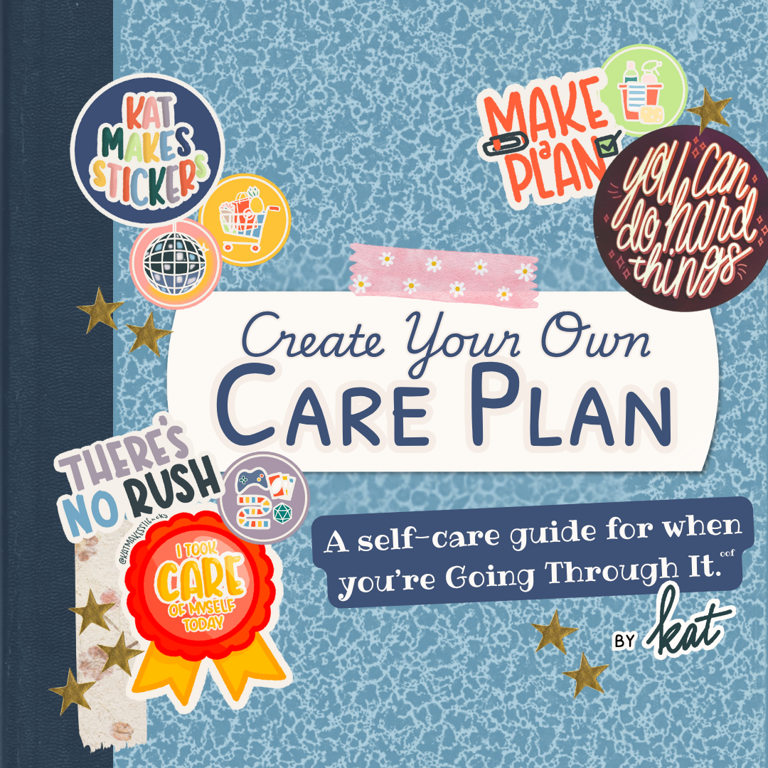 Not everyone needs 1:1 support to get organized. If you just need a little boost, or you want a preview of working together, you’ve got options. Collect some digital and print stickers from Kat’s Sticker Club or download the Create Your Own Care Plan guide.