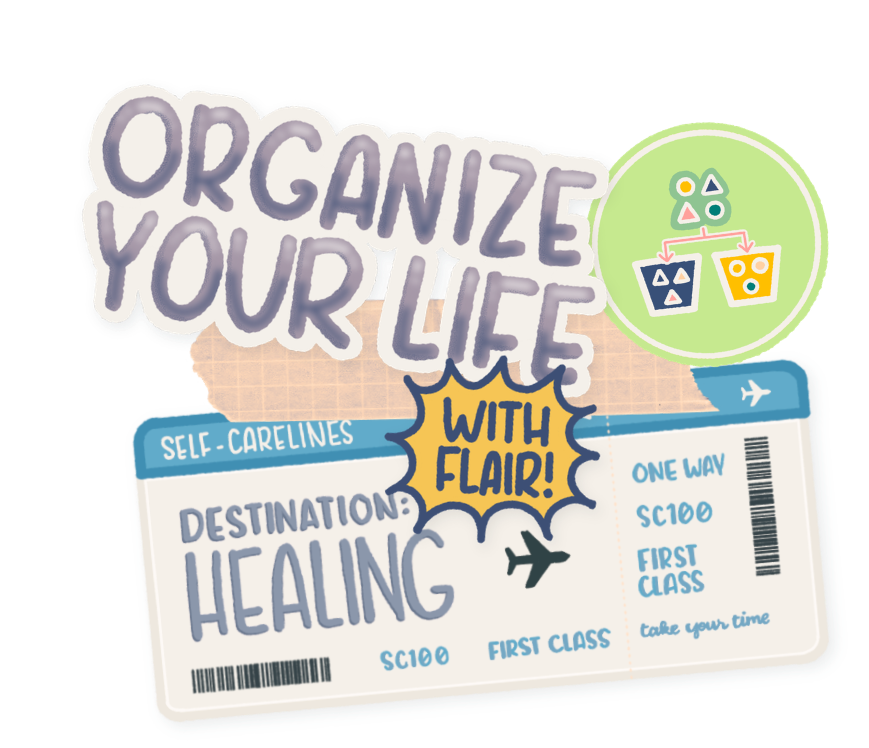 Not everyone needs 1:1 support to get organized. If you just need a little boost, or you want a preview of working together, you’ve got options. Collect some digital and print stickers from Kat’s Sticker Club or download the Create Your Own Care Plan guide.